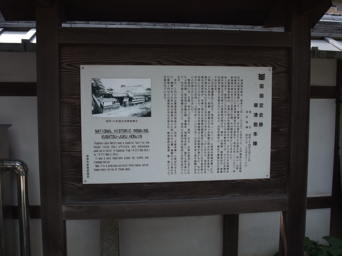 草津宿本陣とはどのようなものか、についてはこの案内板に書かれているとおり。さて、本陣に入ってみる。入場料は「交流館」と合わせて350円だったと記憶する。