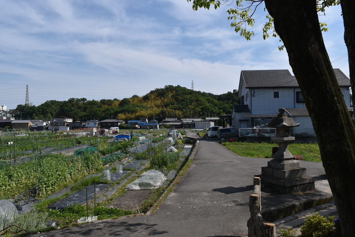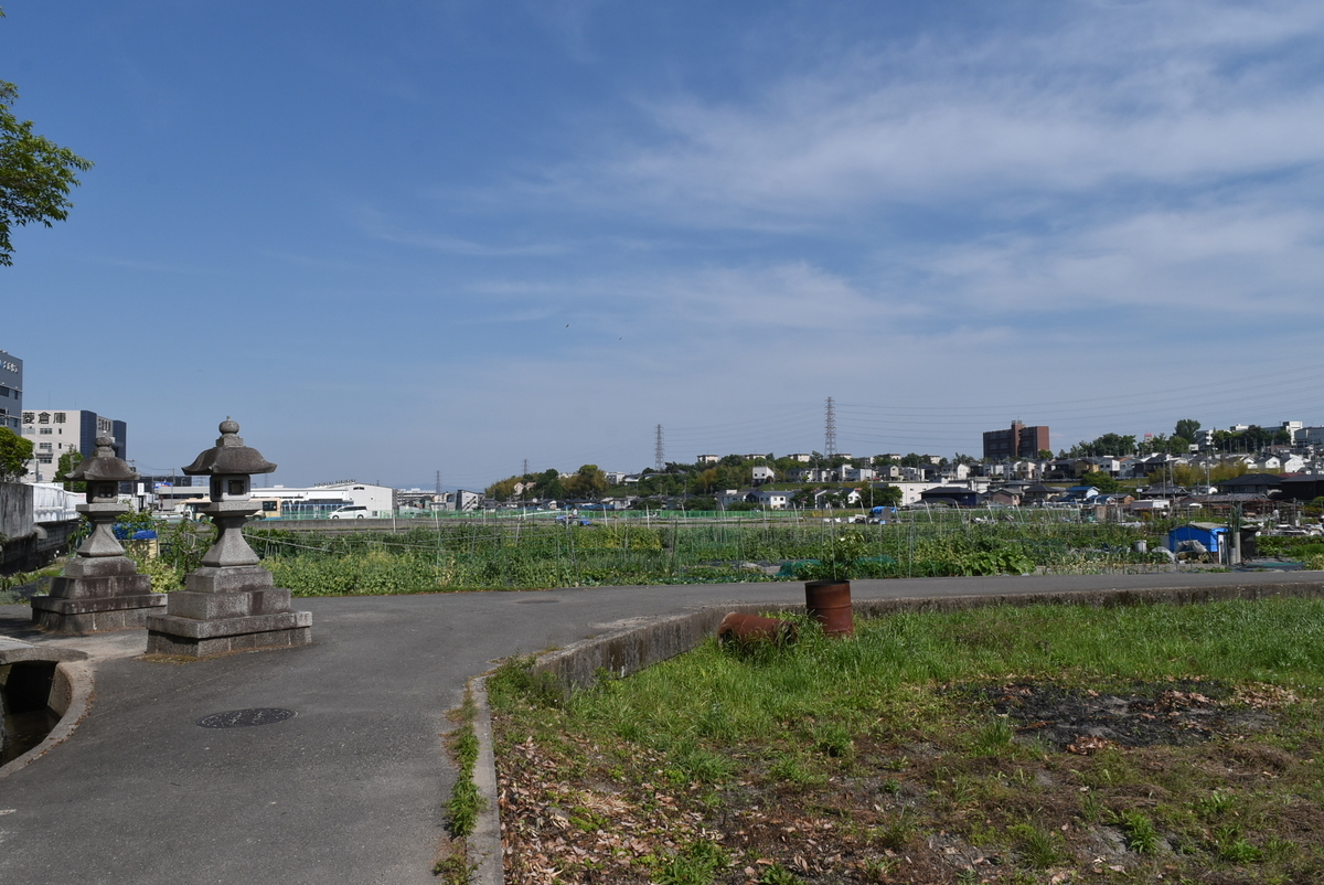 道祖神社から丘陵地のところにある郡山団地の方角を見たところ。